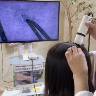 当サロンでは、はじめてのお客様のお悩みを深く知るために30分〜1時間ほどの丁寧なカウンセリングを行います。200倍のマイクロスコープを使用し、「髪の本数や太さ」「血流の流れ」「頭皮の硬さや皮脂量や炎症」まで細かく確認します。さらに、生活習慣•体調•服薬中のお薬などもお伺いし、髪と身体の両面から原因を見ていきます。